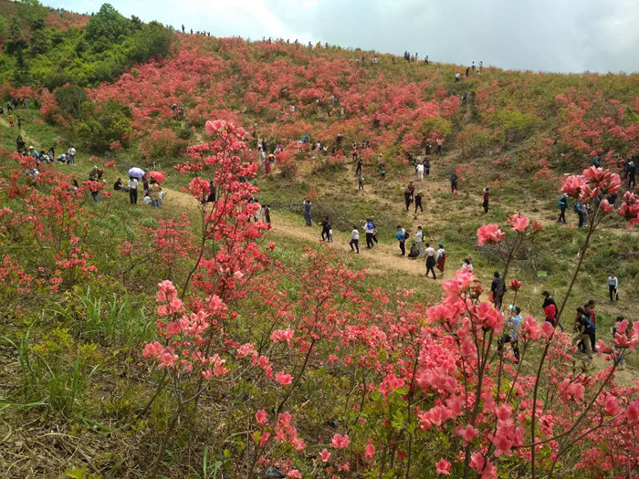 太湖山為溫嶺、樂(lè)清和黃巖的界山,海拔約740米。陽(yáng)春四月,杜鵑怒放,太湖山化身花海,每天吸引了上千人前來(lái)踏春賞花。我們從太湖村沿盤(pán)山公路步行而上,賞山路旁翠竹修篁,觀溪水間鴨群嬉戲,盡情感受著鄉(xiāng)間悠閑的慢生活。沿太湖山尖行進(jìn)途中,杜鵑花一團(tuán)團(tuán)一簇簇,爭(zhēng)相斗艷,燦若云錦。山風(fēng)過(guò)處,搖曳生姿?;▓F(tuán)錦簇處,引帥哥美女大擺POSE秀英姿。登臨太湖山頂,俯瞰巍巍群山,更覺(jué)心曠神怡,一路行來(lái)的疲憊也消除不少。