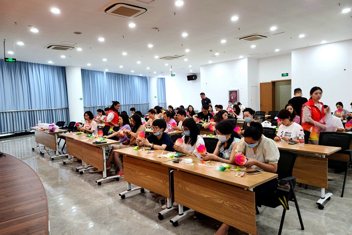 活動中,來自集團所屬各單位的職工,分為3組在老師的帶領(lǐng)下,學(xué)習(xí)制作皮鞋、荷花燈、麒麟納福等非遺手工。